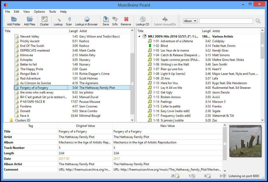 يُمكنك من خلاله تنظيم ملفاتك الصوتية والحصول على المعلومات الخاصة بها مثل إسم الألبوم وتاريخ الإصدار والشركة المنتجة ونوع الموسيقى والعديد من المعلومات الرائعة الأخرى من خلال إستخدام قاعدة بيانات ضخمة خاصة به “Music Brainz” كما يُمكن للتطبيق التعرف على معلومات المقطع الموسيقي بشكل تلقائي من خلال خيار “Scan” والذي يقوم بفحص المقطع والحصول على معلوماته من قاعدة البيانات ويُمكنك تشغيل المقاطع ومعاينتها من خلال التطبيق.