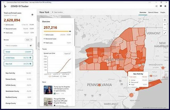 يوفر معلومات حية حول مدى إنتشار الفيروس حول العالم وقد قامت مايكروسوفت بتطويره مؤخراً بعد ظهور فيروس كورونا ويتيح الإطلاع على آخر الأخبار ومقاطع الفيديو المتعلقة بالفيروس بجانب العديد من الإحصائيات المفيدة من خلال قسم “Graphs” والذي يوضح الرسم البياني الخاص بالإصابات والحالات التي تم إكتشافها سواء عالمياً أو بدول معينة.