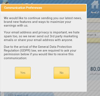 بعد النقر على عبارة «الدخول إلى حسابك» سوف تتمكن من الوصول إلى حسابك في adfly ، عندها سوف تظهر لك نافذة منبثقة كما في الصورة التالية ، فقم بالنقر على yes