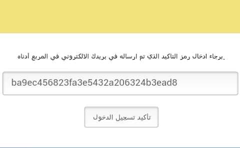 بعد نسخ الكود و النقر على الرابط المتواجد في الرسالة البريدية سوف تظهر لك الصفحة التالية ، و الآن قم بلصق الكود في الخانة ثم أنقر على عبارة « تأكيد تسجيل الدخول »