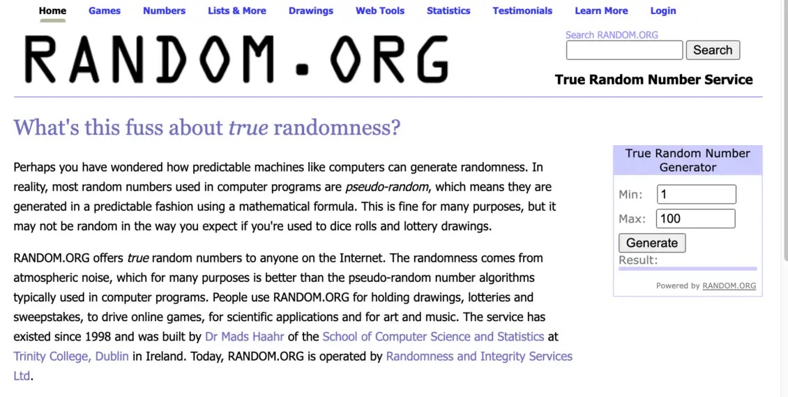 يقدم موقع Random خاصية إجراء قرعة إلكترونية بشفافية، وهذا لأنه يعتمد على مبدأ سهل وبسيط.